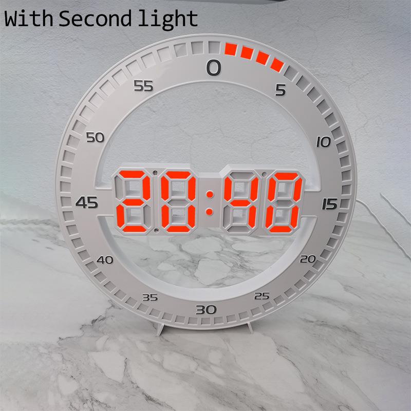 LED Digital Wall Clock 3D Luminous Mute Electronic Wall Clock Temperature Date Multi-function Jump Second Clock Home Decoration