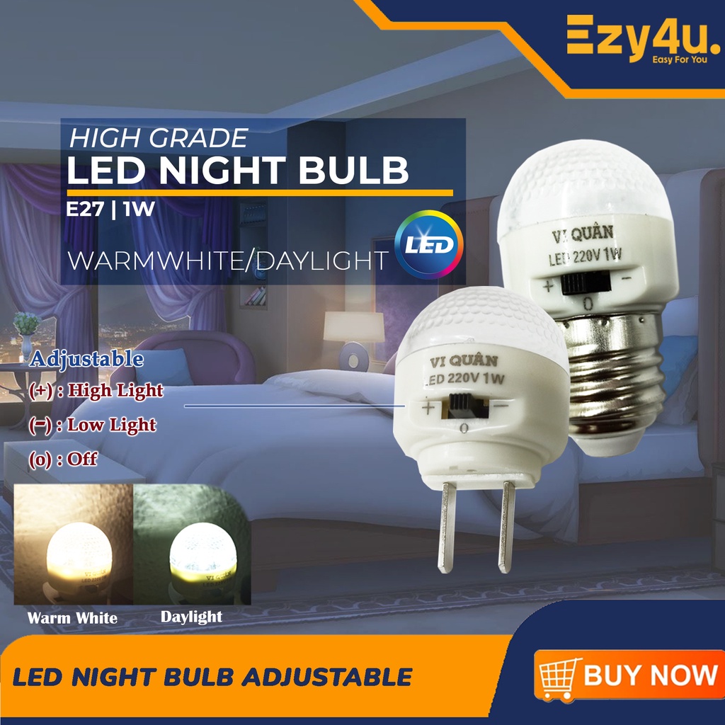 LED Dimmable Night Bulb Plug-IN E27 Daylight WarmWhite Brightness Adjustable Bright Mini Wall Night Light for Bedroom