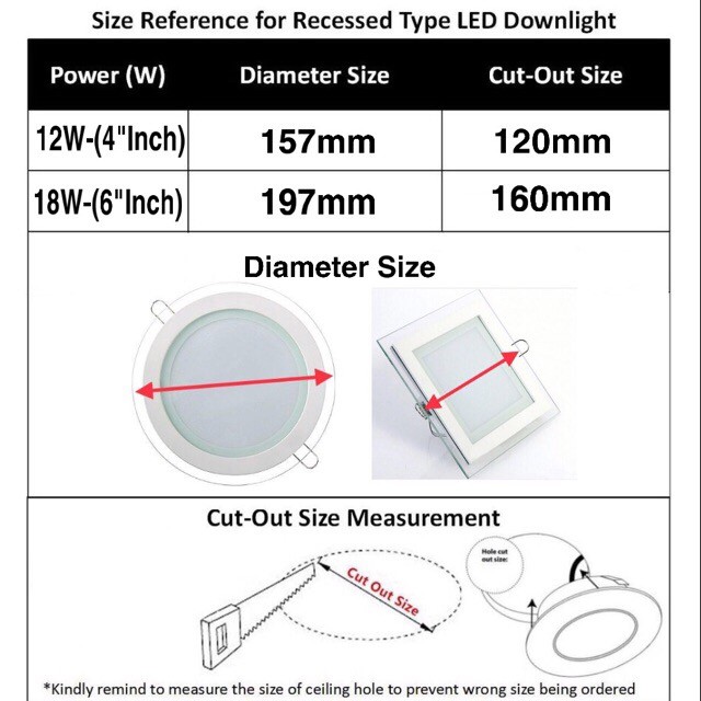 LED Downlight Glass Recess 12W 20WDownlight(Glass) 6"(20W) / 4" (12W) GLASS LED DOWNLIGHT PANEL LIGHT PLASTER CEILING LI