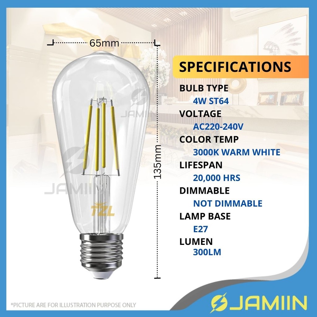 LED E27 Vintage EDISON BULB Clear Glass Retro Bulb Warm White Incandescent Light Edison Bulb Mentol Lampu Retro Light