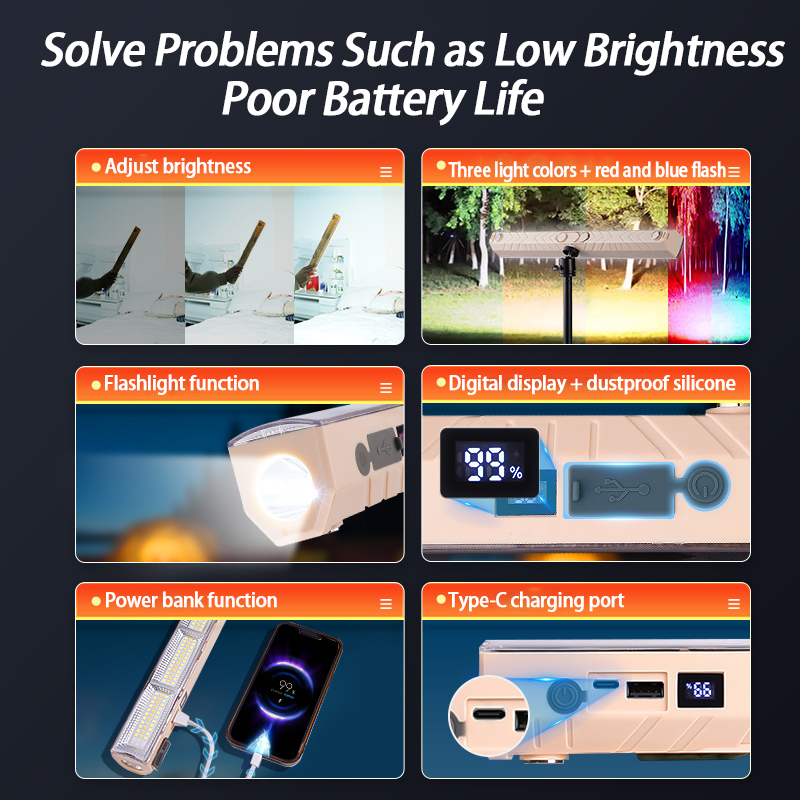 LED Emergency Lamp Portable Camping Light Type-C Rechargeable Tricolor Lampu Waterproof Hook Work Lampu Magnetic Suction