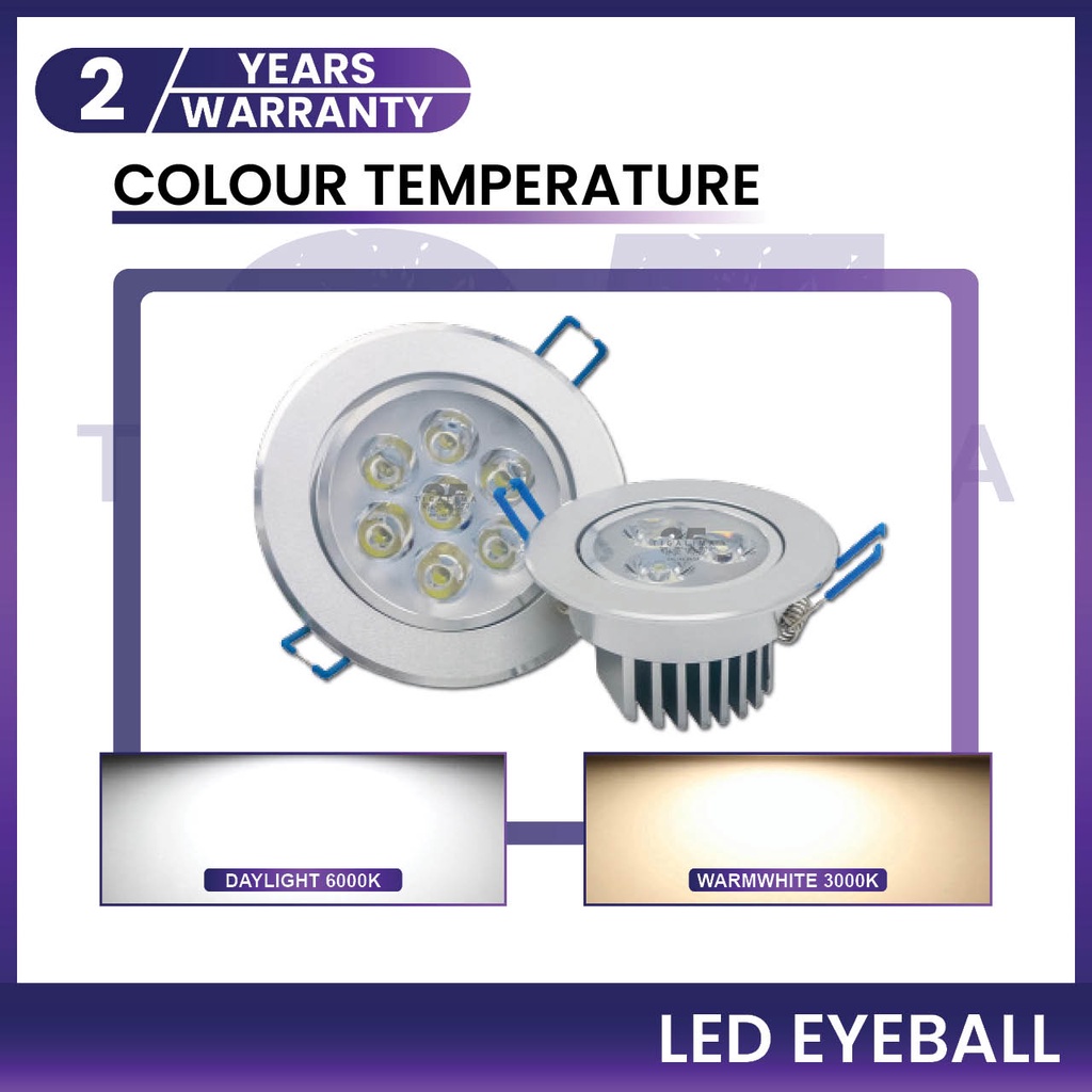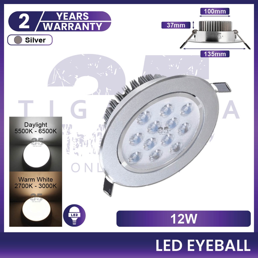 LED Eyeball 3W 7W 12W Recessed Ceiling Downlight LED Spot Eye Ball Bulb White Silver Frame LED Eyeball Lampu Siling