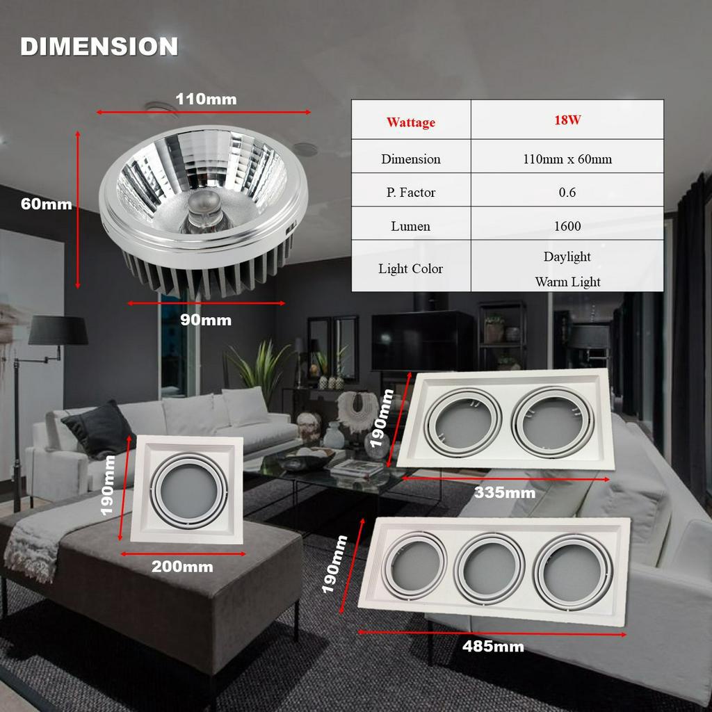 LED Eyeball Fitting Casing AR111 18W Sportlight Case Single/Double/Triple Case Recess Sportlight Light Fixture