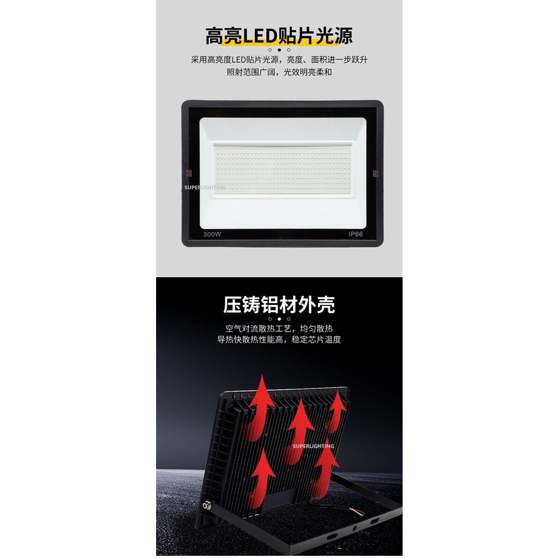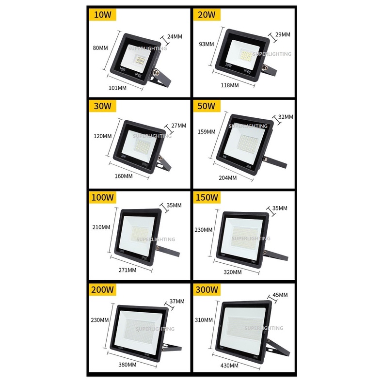 LED Flood Light 20W 50W 100W 200W 300W IP66 Floodlight Waterproof Outdoor Spotlight Lighting