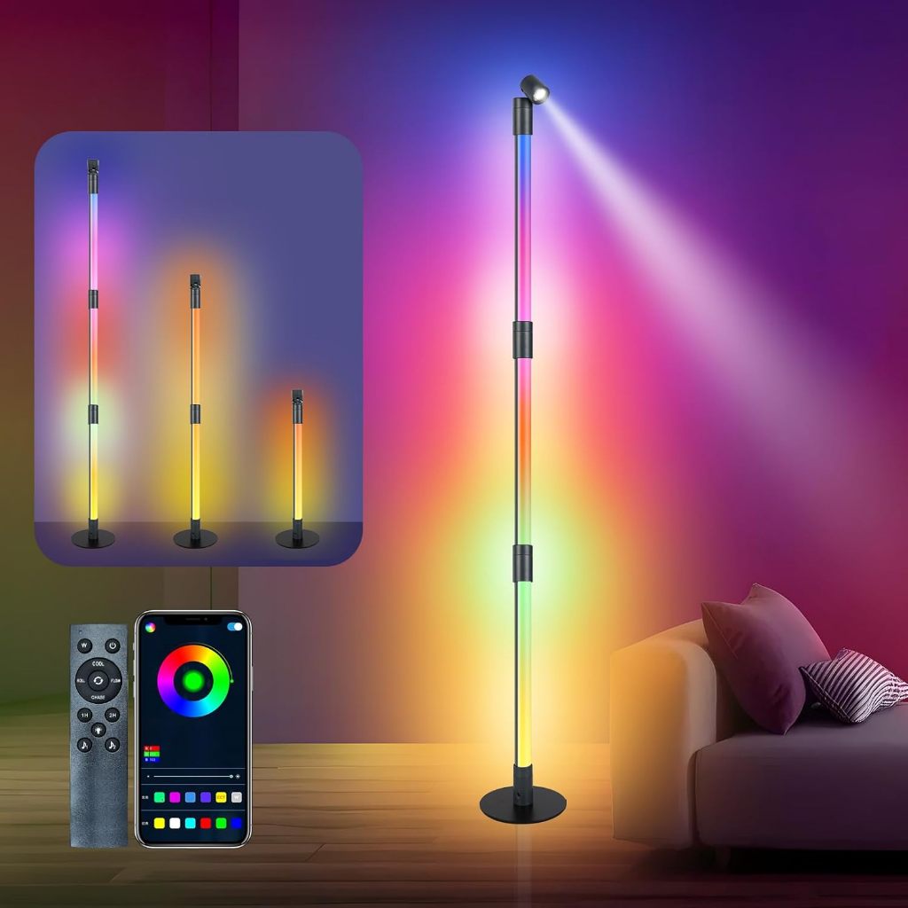 LED Floor Lamp, RGB with IC and White Light Corner Lamp, Smart Modern DIY Color Floor Lamp with Music Sync, 360 Degree