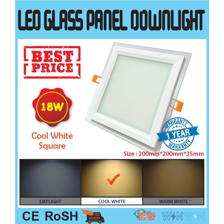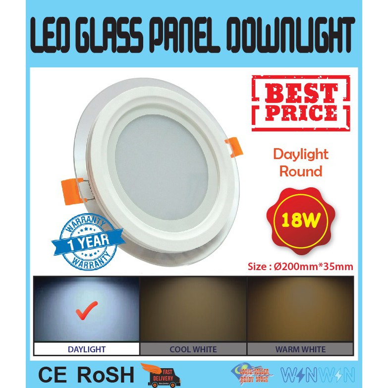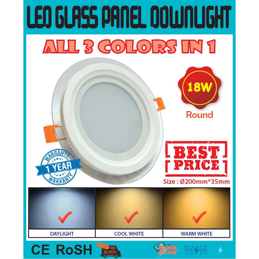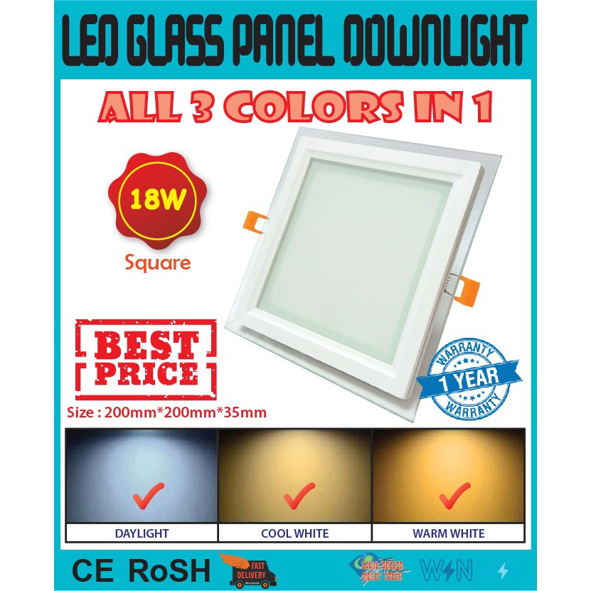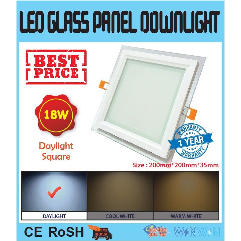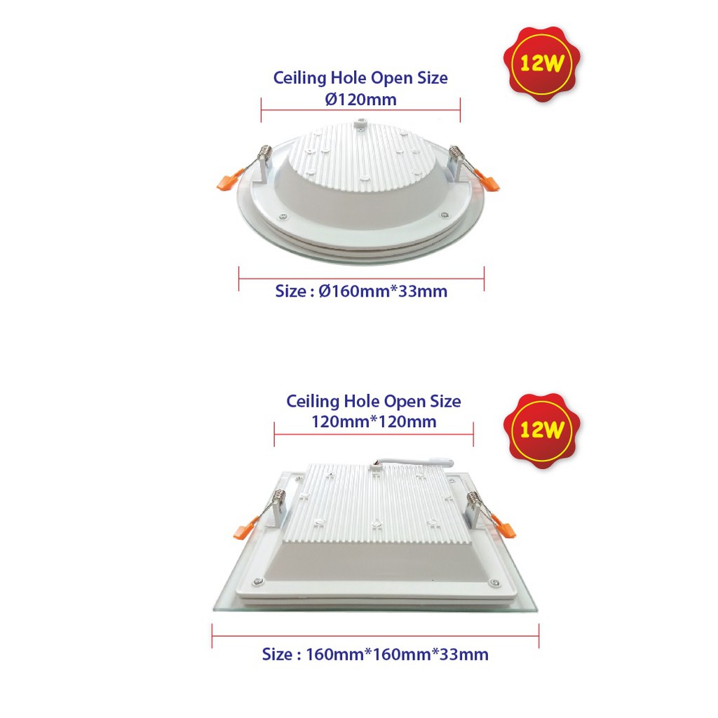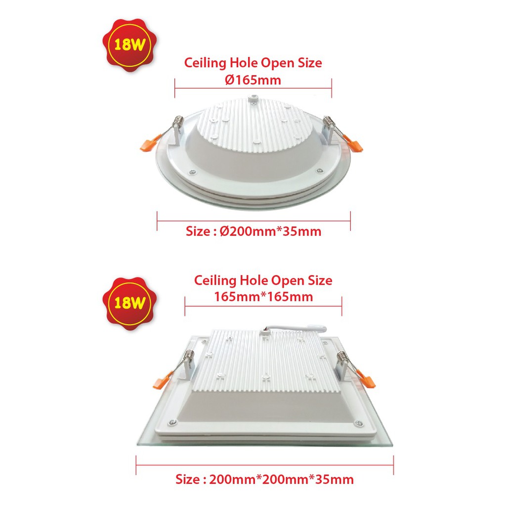 LED Glass Downlight 12W 18W Ceiling Recessed Downlight | Round/Square | 4/5/6 Inch | Daylight / CoolWhite / WarmWhite