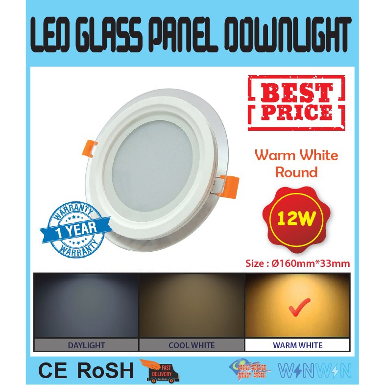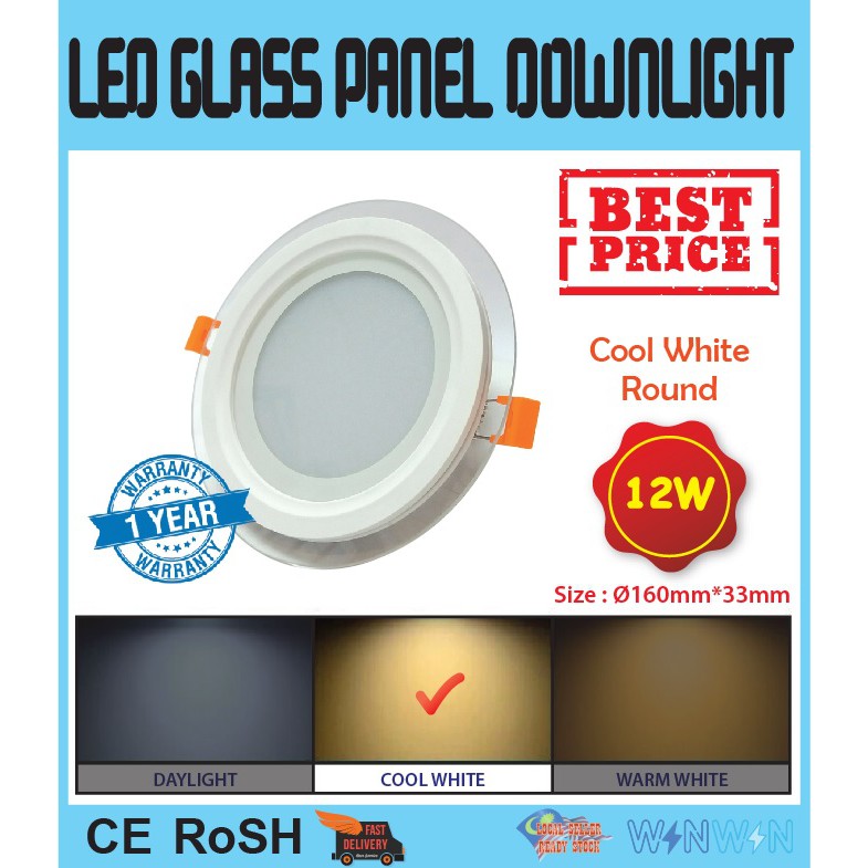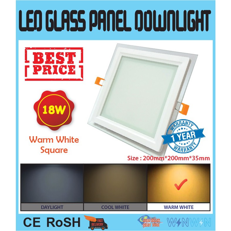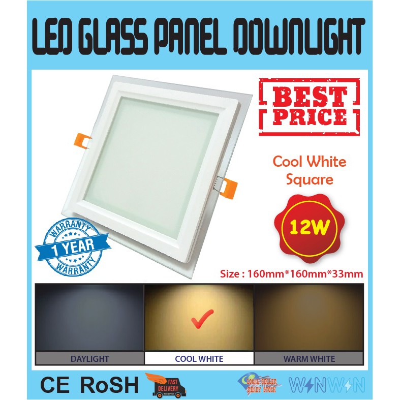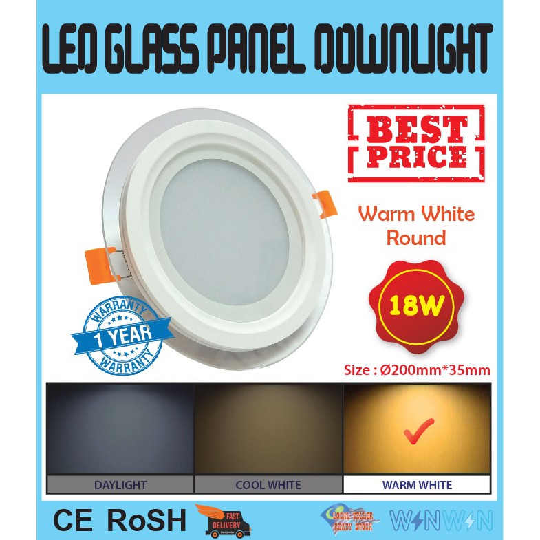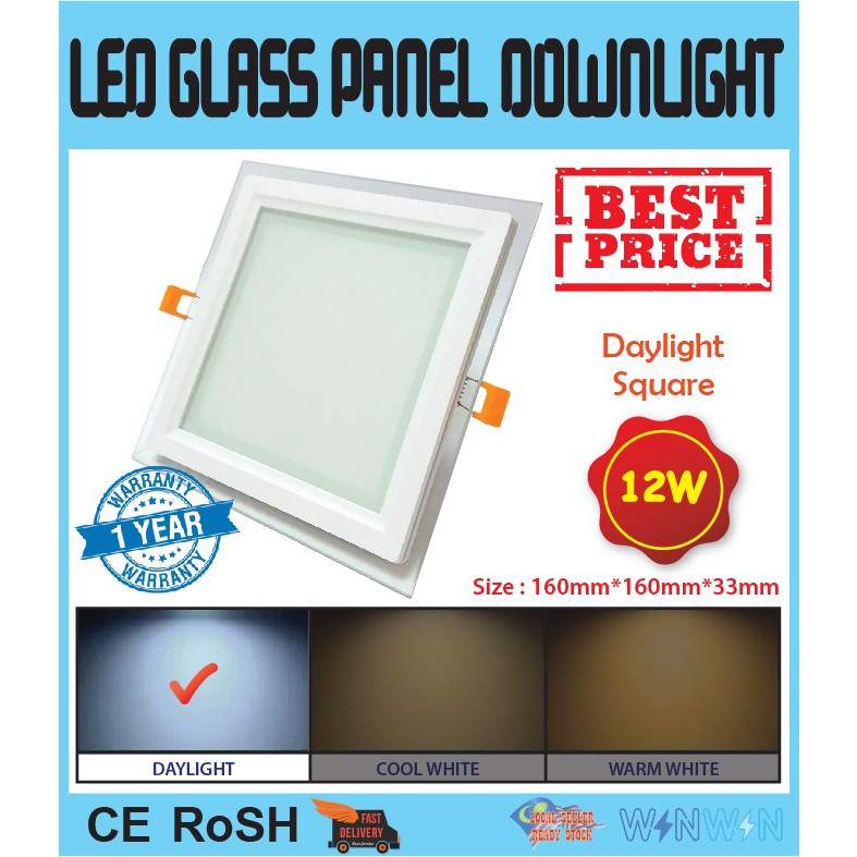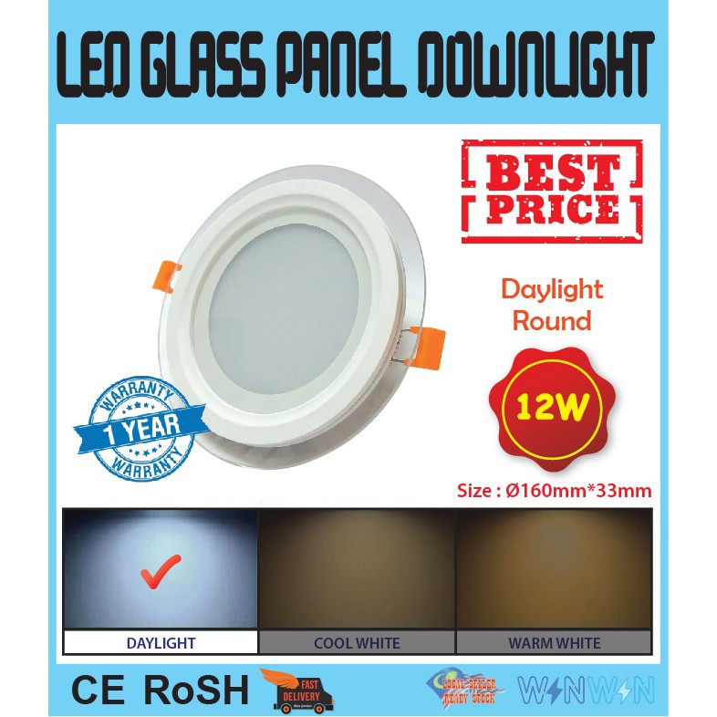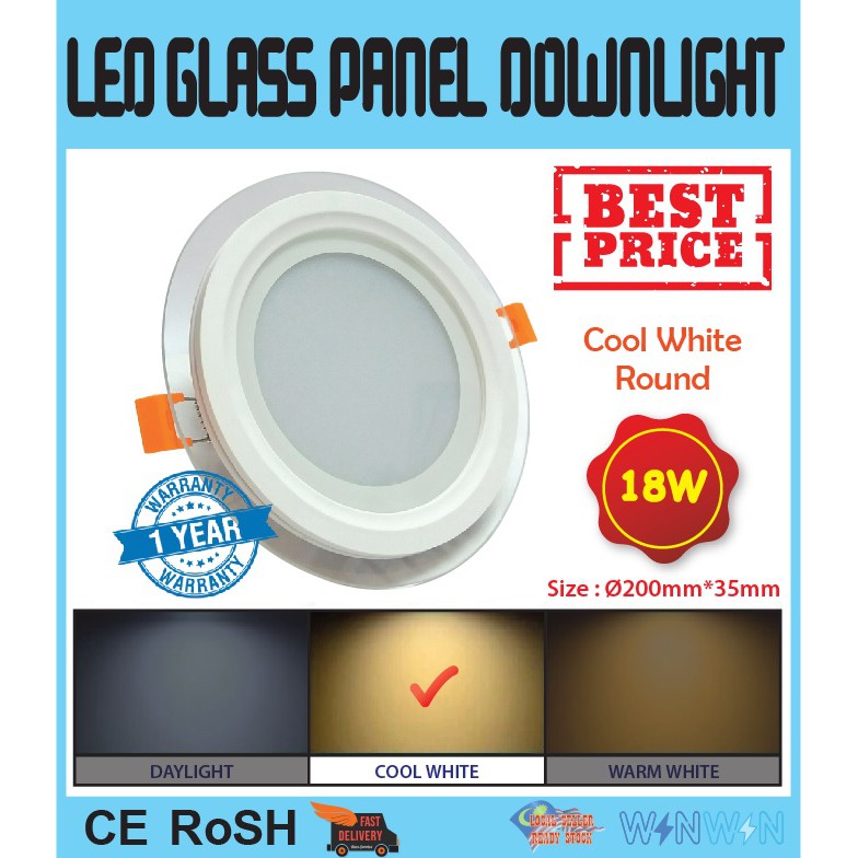 LED Glass Downlight 12W 18W Ceiling Recessed Downlight | Round/Square | 4/5/6 Inch | Daylight / CoolWhite / WarmWhite