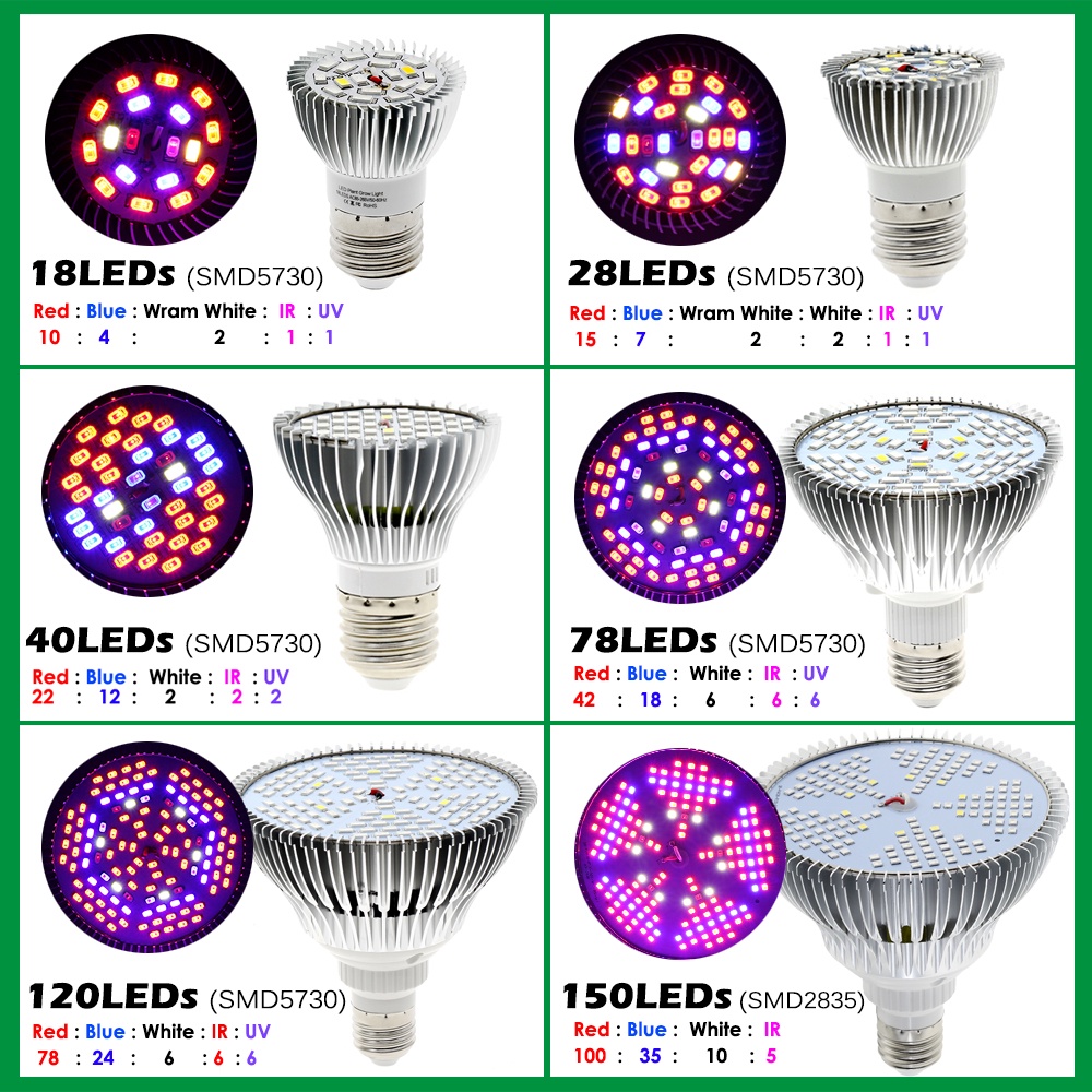 LED Grow Light 150Leds 200Leds Full Spectrum Sunlike E27 LED Growing Bulb For Indoor Hydroponics Flowers Plants LED Growth Lamp