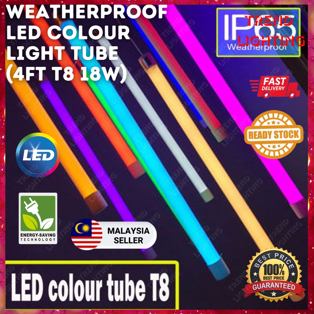LED Lampu Color Light Tube Waterproof Weatherproof 4ft T8 18W Multi Colour RGB Lampu Tube Kedai Makan