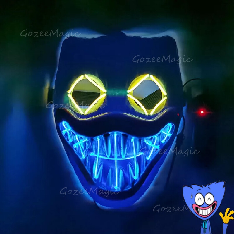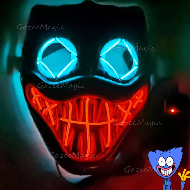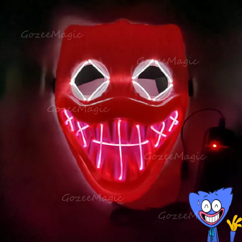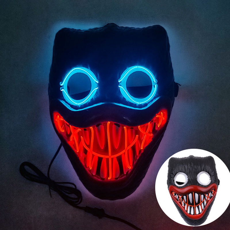 LED Light Poppy Playtime Mask Huggy Wuggy Halloween Easter Horror Glow Cosplay Costume Performance Props Masquerade Party Sausage Mouth Monster Mask