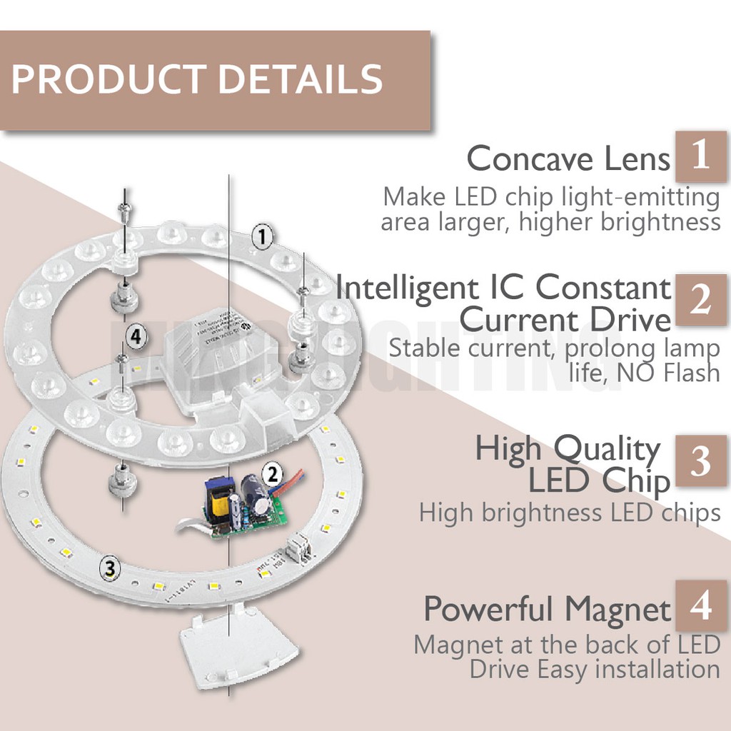 LED Magnet Light 18W 24W 36W 48W Module Circular Ring Down Lights Tube Downlight Ceiling Lighting Lampu Bulat Siling
