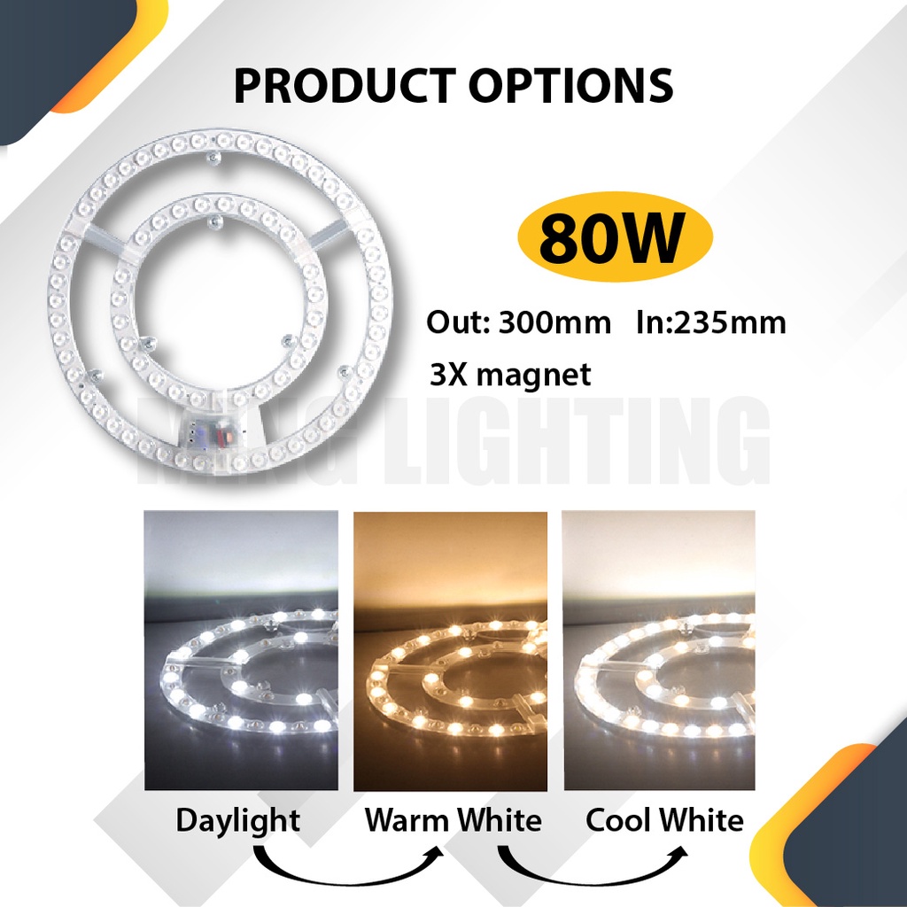 LED Magnet Light Circular Module Ring 15W 48W 72W 80W 120W Lights Lampu Bulat Siling Downlight Ceiling Lighting 3 Colors