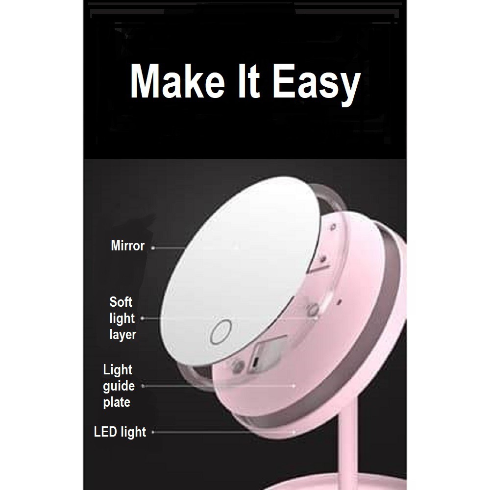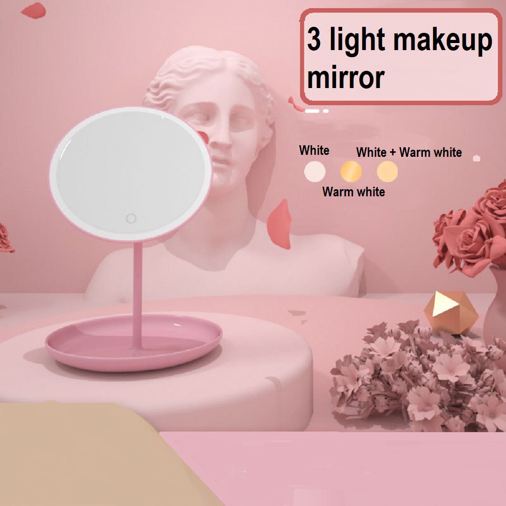 LED Make Up Mirror with Touch Sensor Cosmetic Beauty with stand light Face Round Mirror USB Charging Adjustable LED