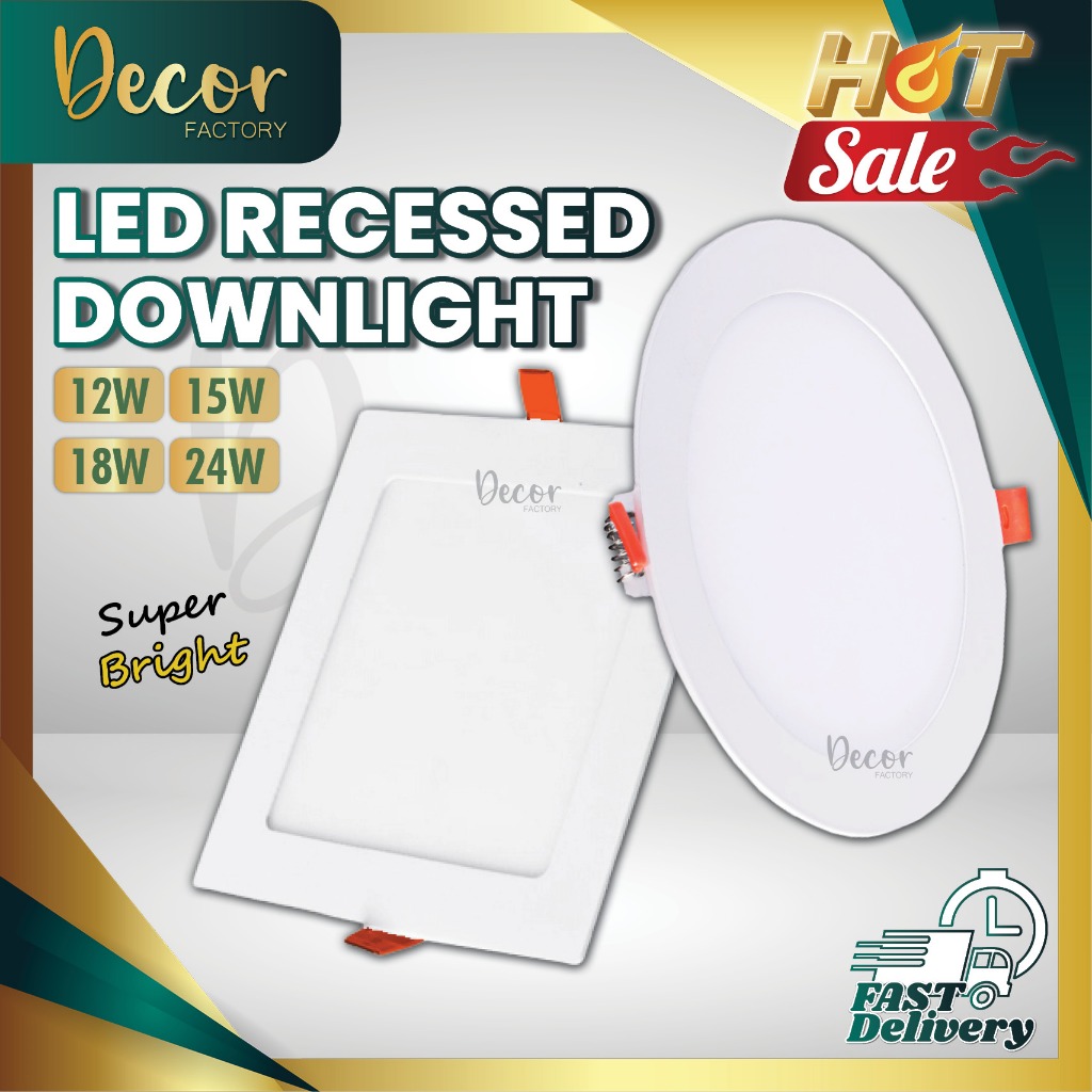 LED Recessed Downlight 12W 15W 18W 24W 4" 6" 8" LED Recess Downlight Round / Square Lampu LED Downlight Siling Light