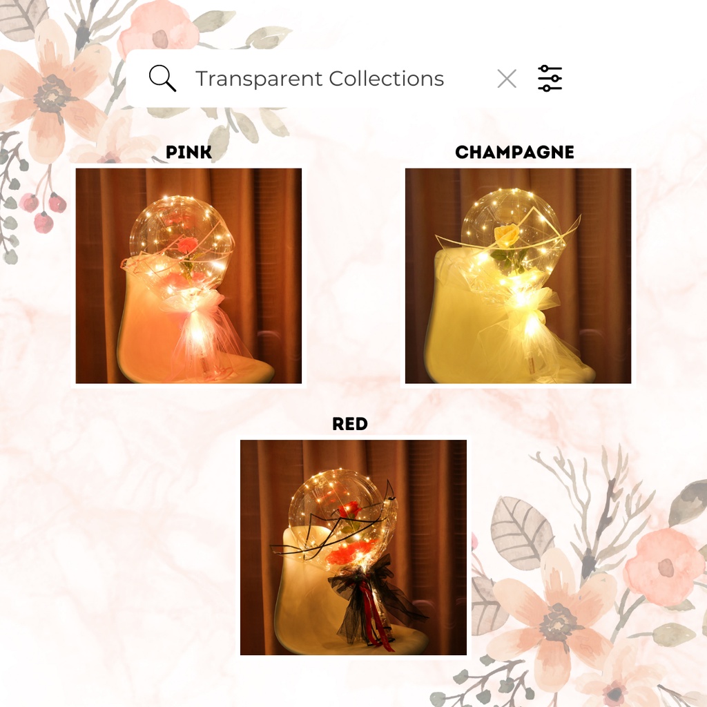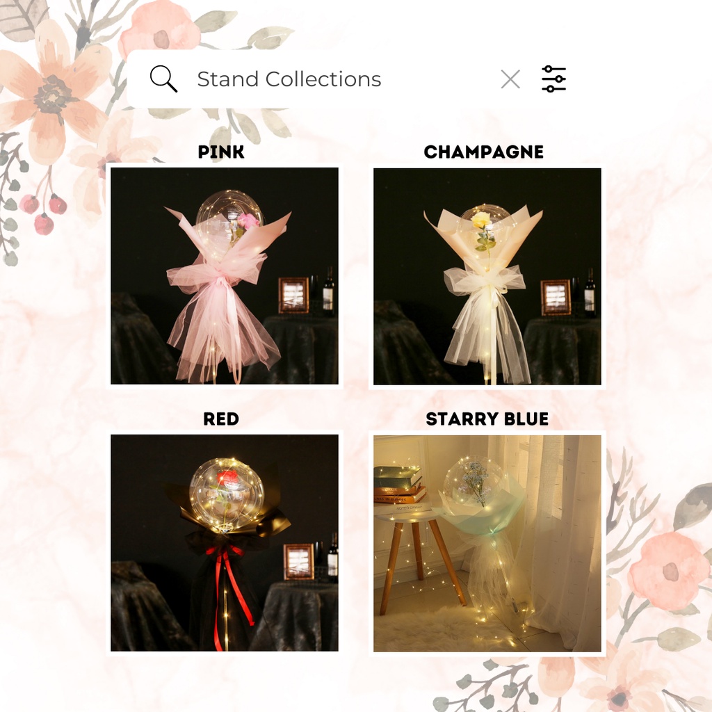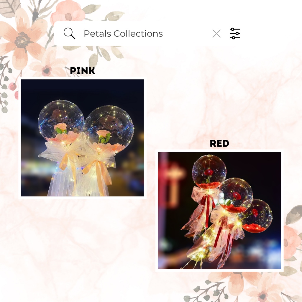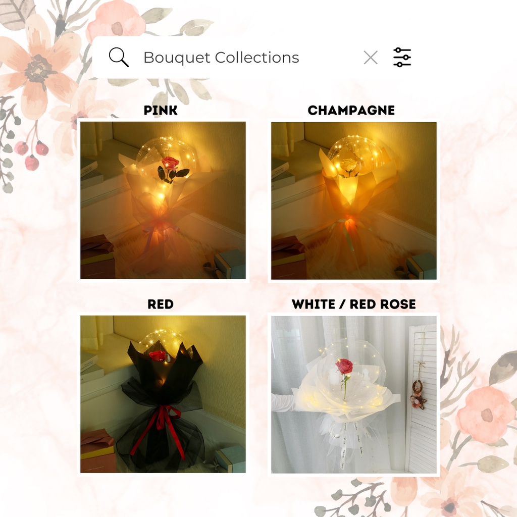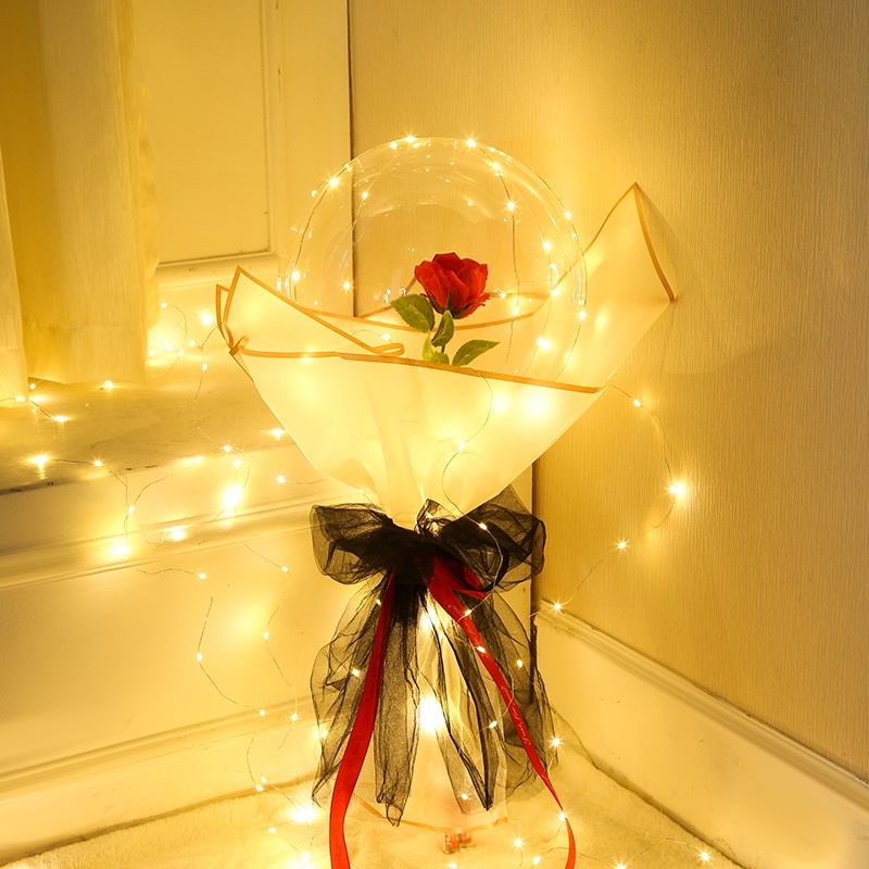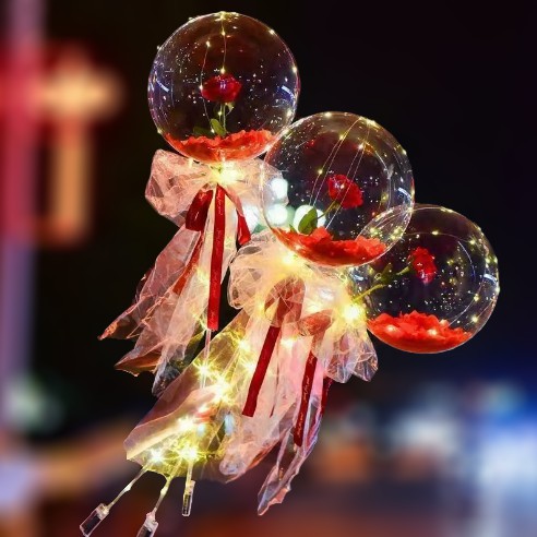LED Rose Flower BOBO Balloon Bouquet – DIY Bunga Ros Set Belon Gift Valentine & Birthday