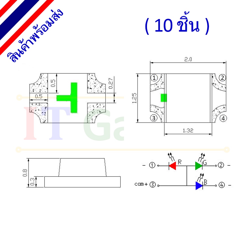 LED SMD 0805/2012 RGB Common Anode (10 Pieces)