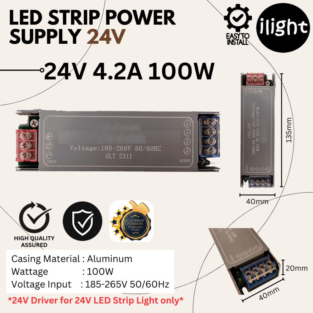 LED STRIP LIGHT POWER SUPPLY 12V 24V 60W / 100W / 200W SLIM LED DRIVER