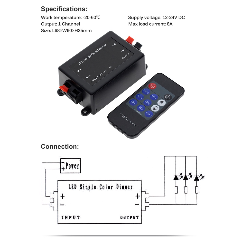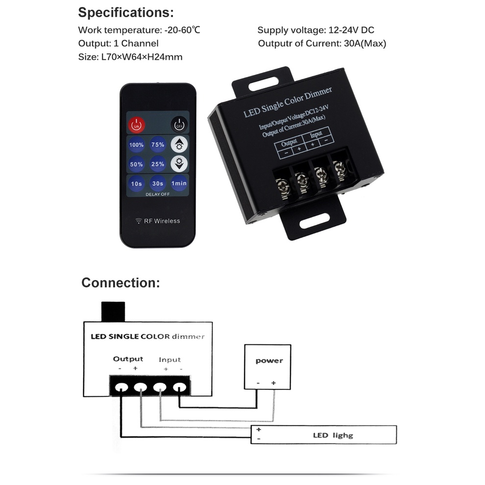 LED Single Color Dimmer Wireless LED Controller 11 Key RF Remote Control Adjust Brightness Switch For LED Strip12V 24V