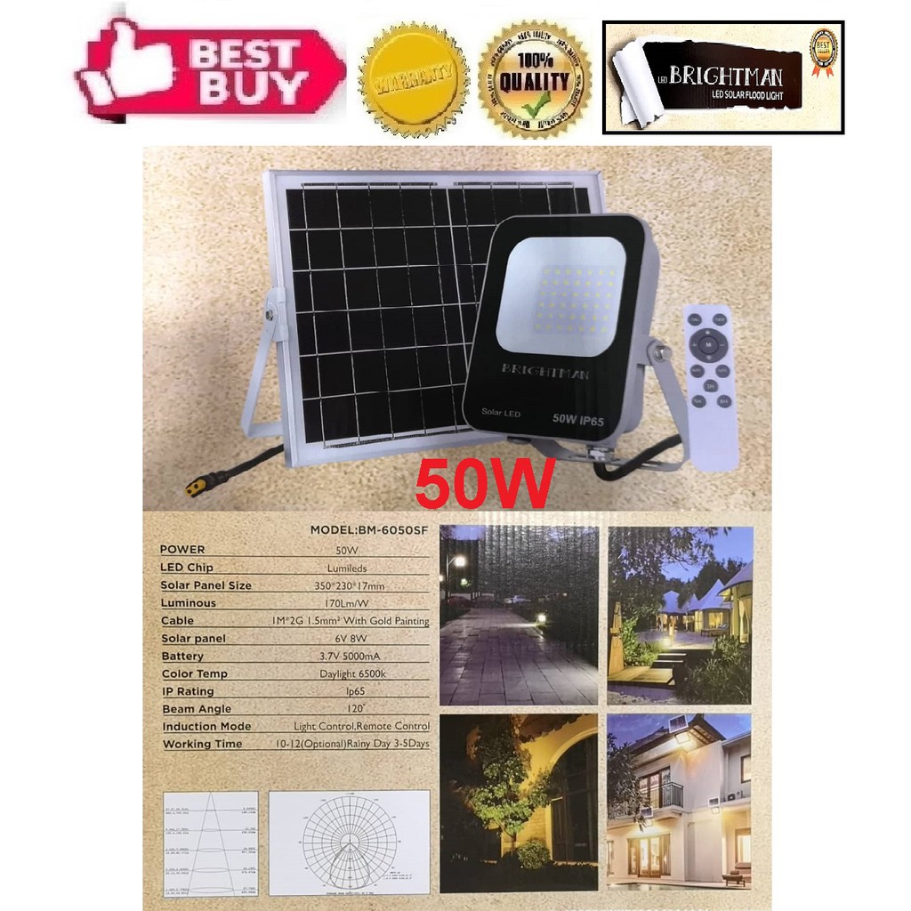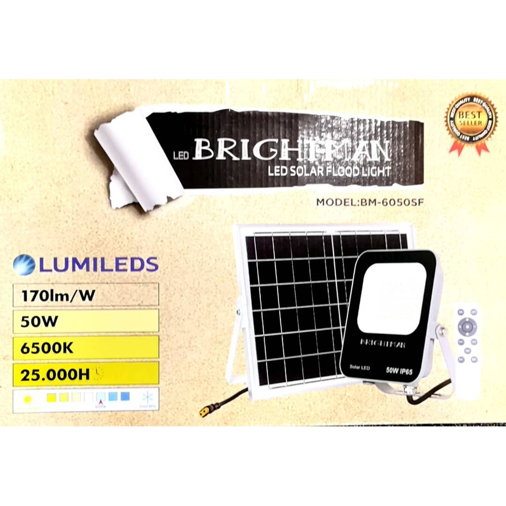 LED Solar Flood Light (50W) (6500k Daylight) (Grey) (Brightman) *Solar Panel Size - 350x230x17mm