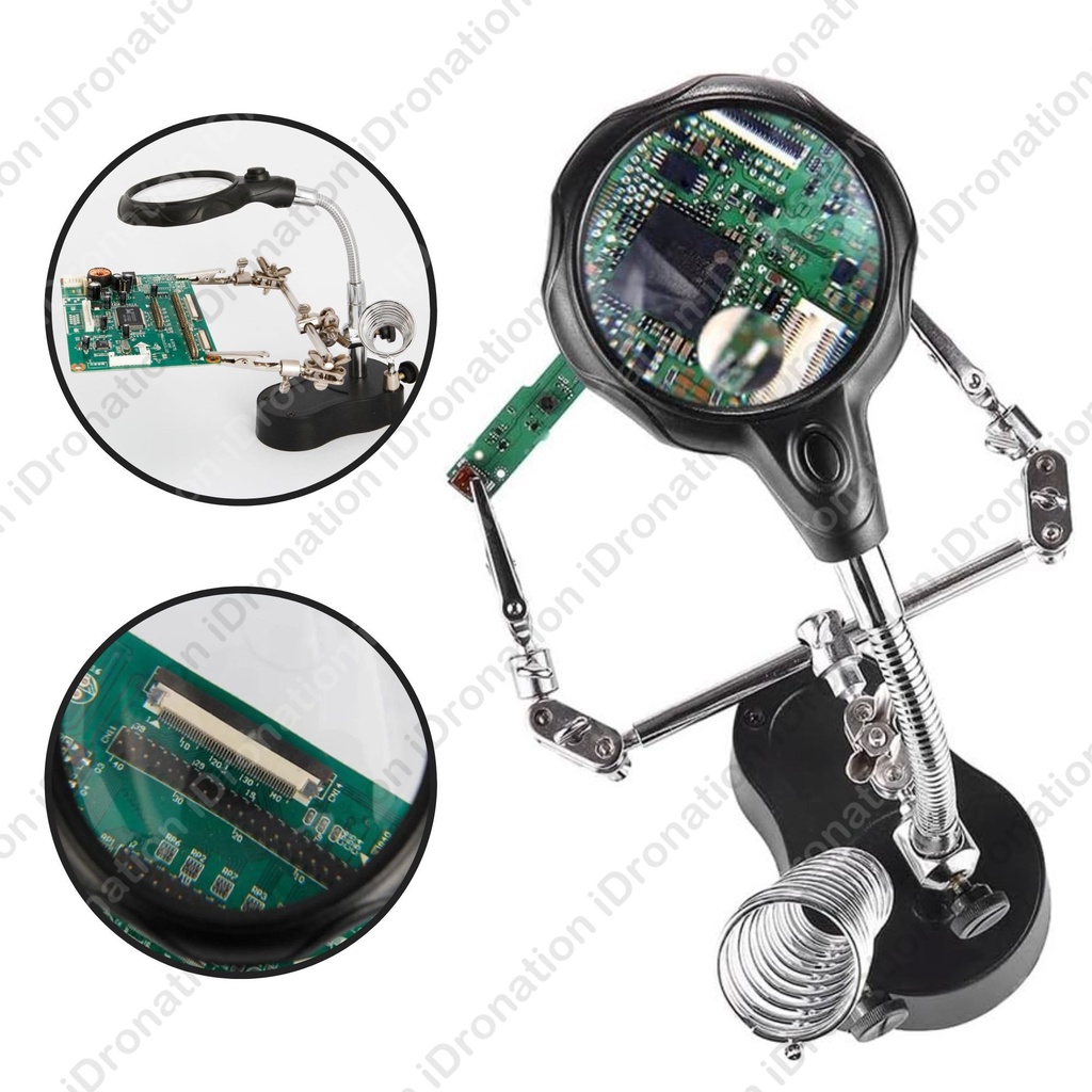 LED Soldering Iron Gun Holder Stand Welding Magnifier Glass with Helping Clamp Clip Third Hand Helping Repair Tool
