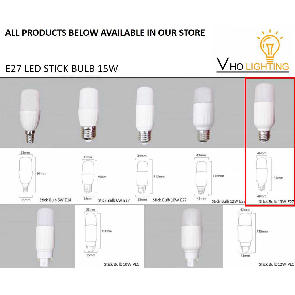 LED Stick Bulb 15w E27 Screw Lightbulb Lamp (Sirim)