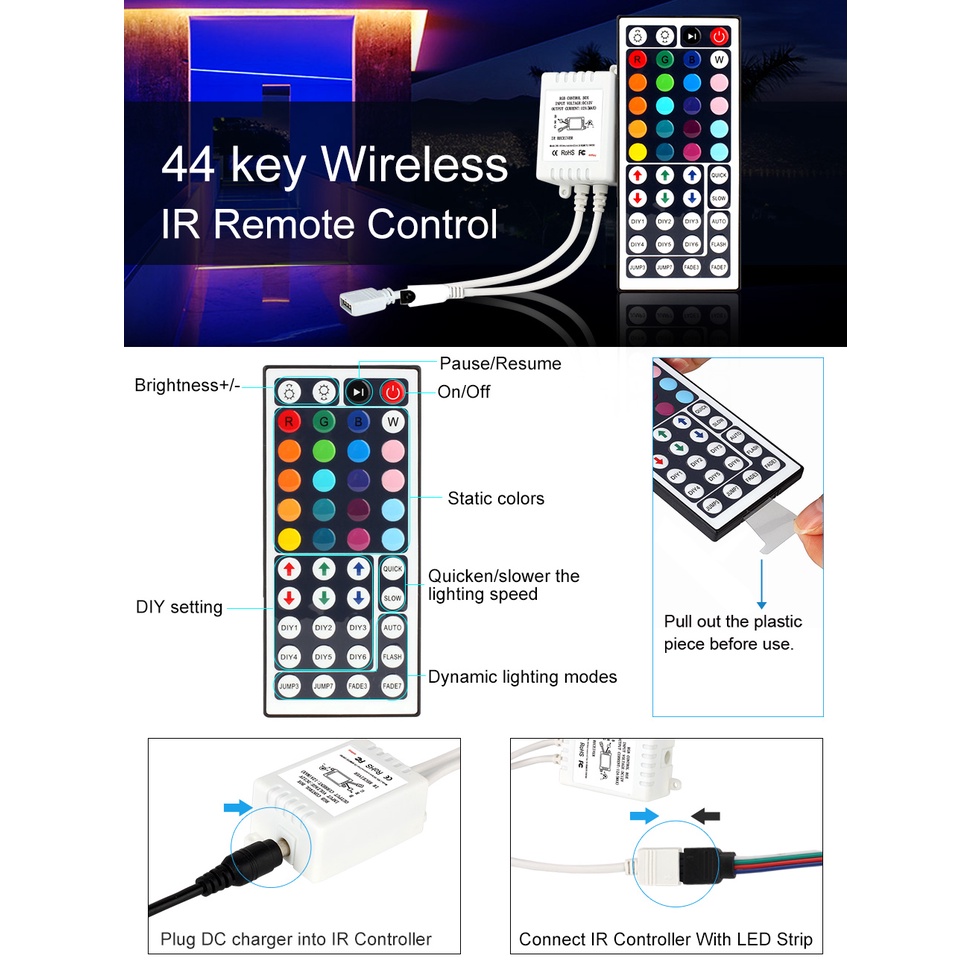 LED Strip Light 5050 RGB 12V 5M LED Light Strips Lighting Party Bedroom TV Backlight 44 Key Remote Control
