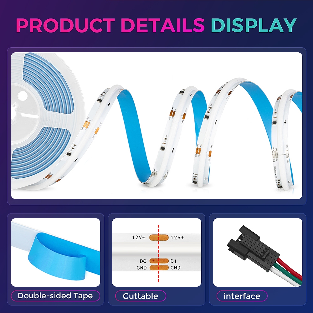 LED Strip Lights 5M/3M RGB IC COB Led Light Addressable strip Light DC12V Dream Color Flexible TV BackLight Room Party Decoration