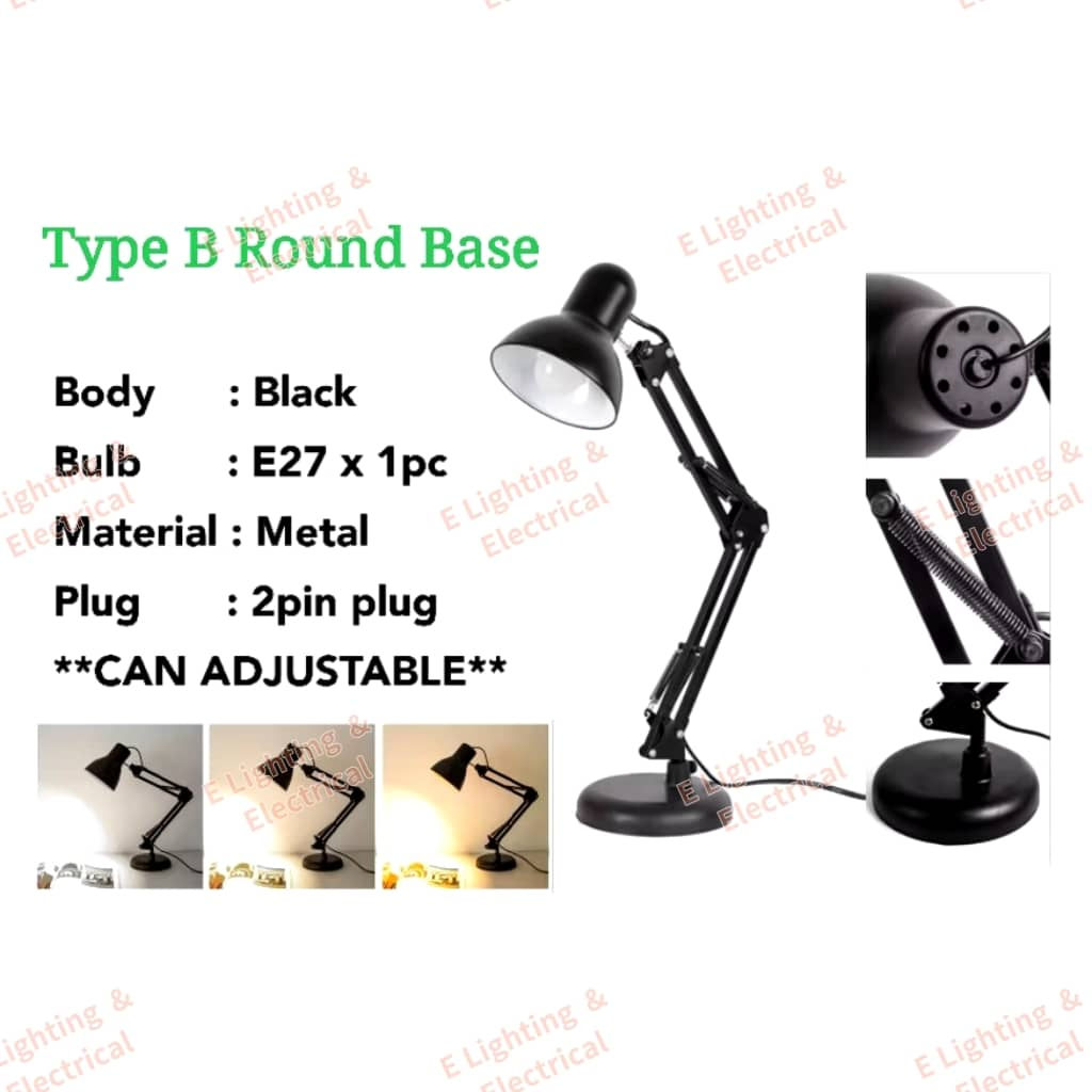 Table Lamp Metal Wire Reading Lamp Desk Lamp Long Arm Folding Bedroom Study Lamp Lampu Baca