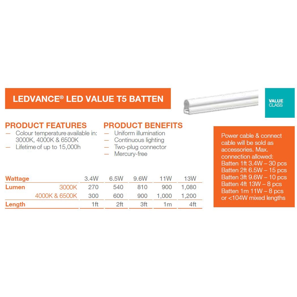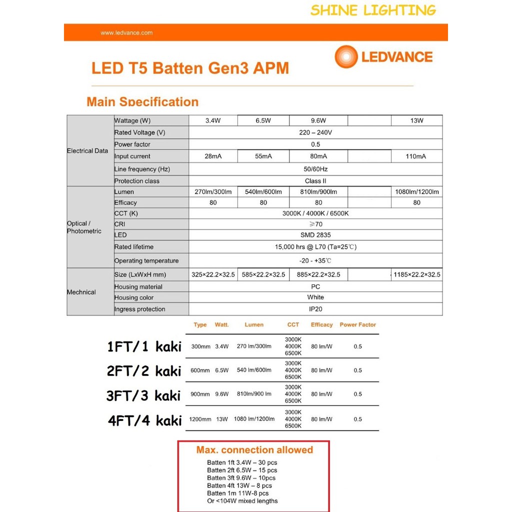 LED T5 BATTEN OSRAM LEDVANCE (1ft, 2ft, 3ft, 4ft) DAYLIGHT/COOL WHITE/WARM WHITE