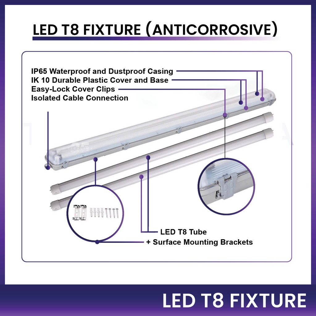 LED T8 Anti Corrosive Fitting Casing Louver Fitting Casing For T8 LED Double Input Tube T8 Tube Casing For Kalimantang