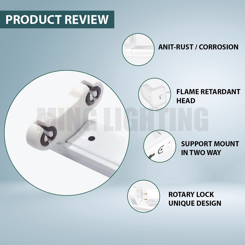 LED T8 Casing 2FT 4FT Kalimantang Single Double Fitting Light Tube Ceiling Wall Lighting Lampu Panjang Siling Dinding