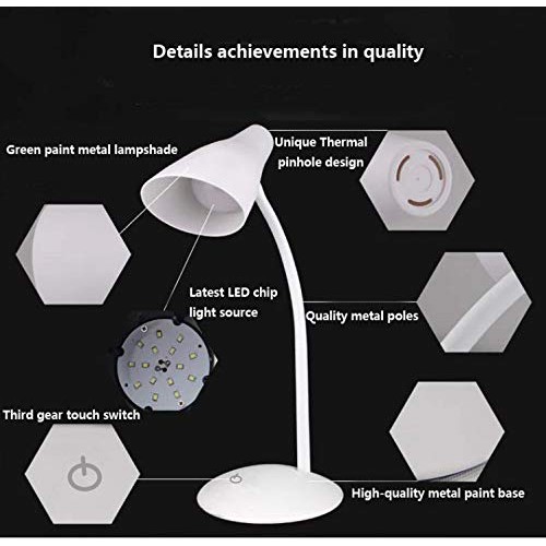 LED Touch Dimming Clamp Lamp 3-Level Dimmable LED, USB-Powered Eye-Caring Touch Control Table Lamp Study Lamp Lampu