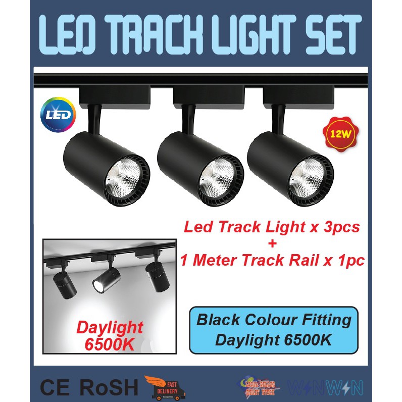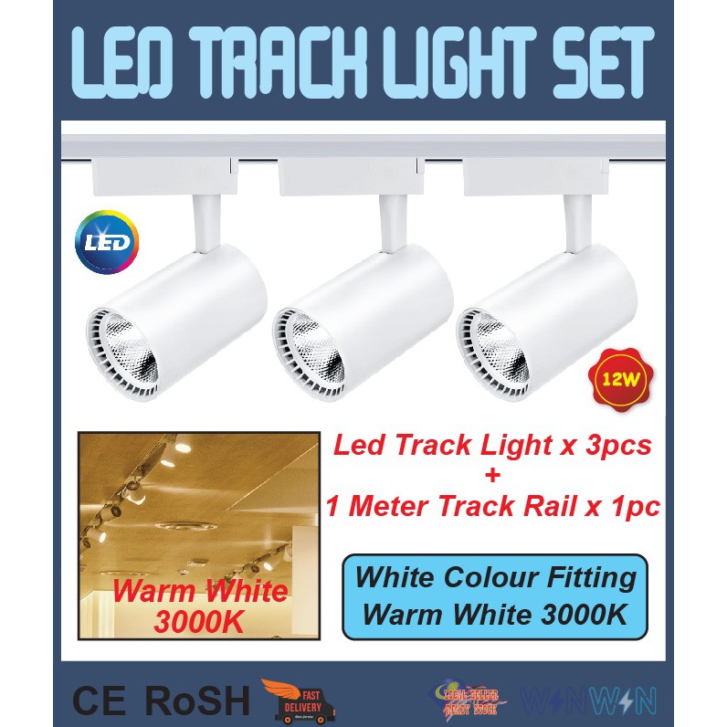 LED Track Light Set [Set of 4] 3pcs 12W Cob Led Track Light + 1pc 1Meter Track Rail | Lampu Hiasan Trek