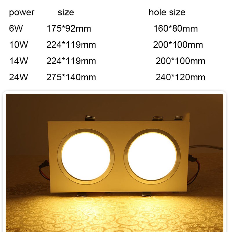 LED downlight Double Head three color 6W 10W 14W 24W 220V Recessed Down lamp Embeded for foryer