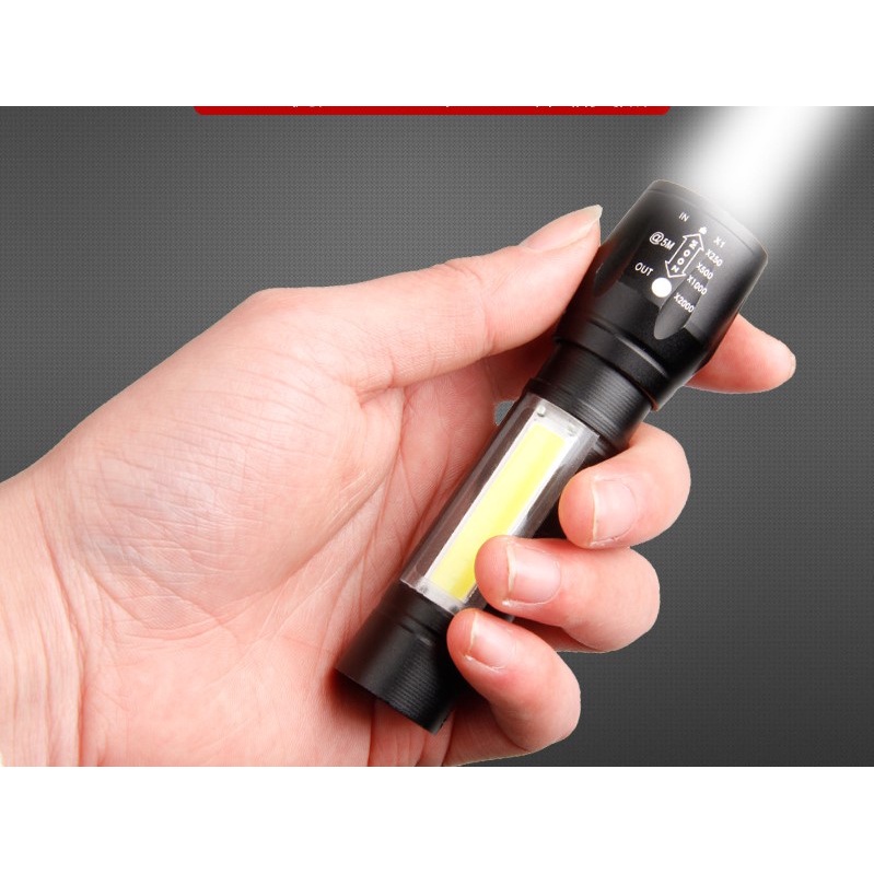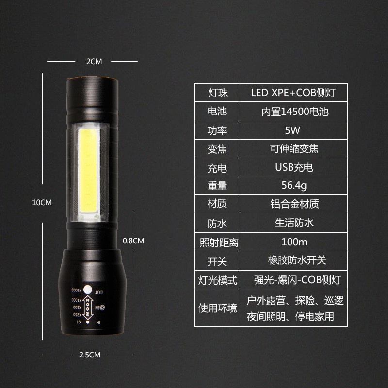 LED small flashlight mini torchlight with side light COB telescopic zoom USB charging