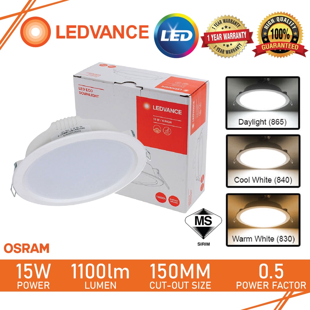 LEDVANCE OSRAM LED ECO DOWNLIGHT 5" 12.5W / 6" 15W (3000k 4000k 6000k)