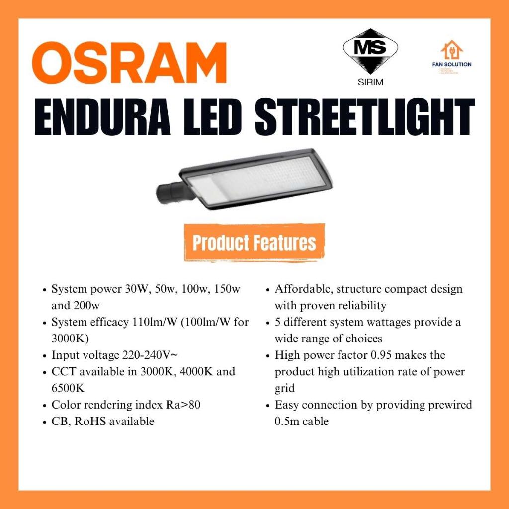 OSRAM LED ENDURA STREETLIGHT IP66 WATERPROOF OUTDOOR 30W/50W/100W/150W/200W SIRIM DAYLIGHT