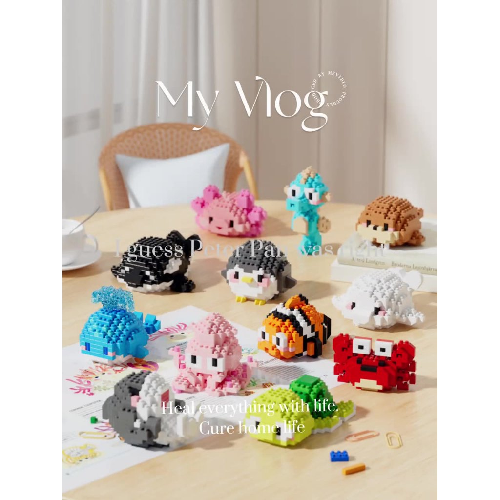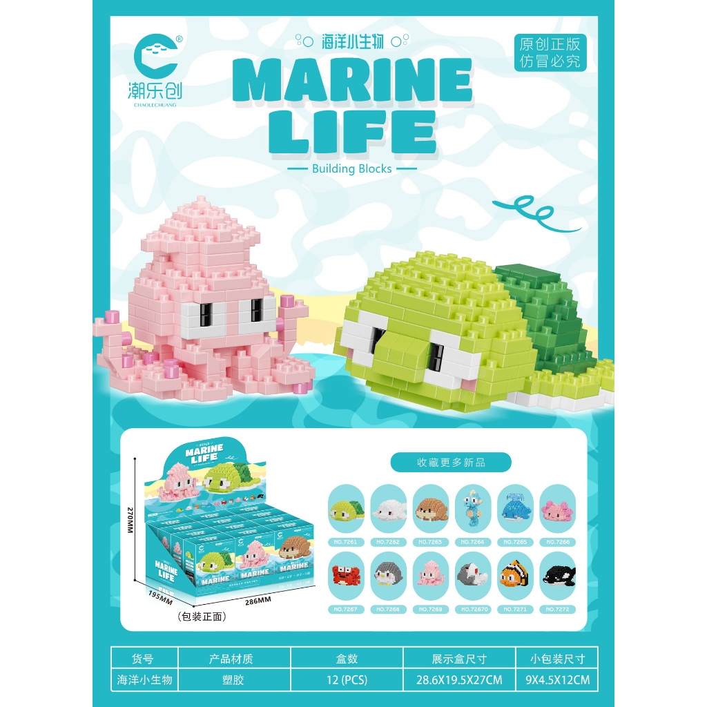 LEGO Combo of 3 random legos (1 set/12 sea creatures), nemo fish, octopus, seal, whale, cute turtle for kids - h2t toys