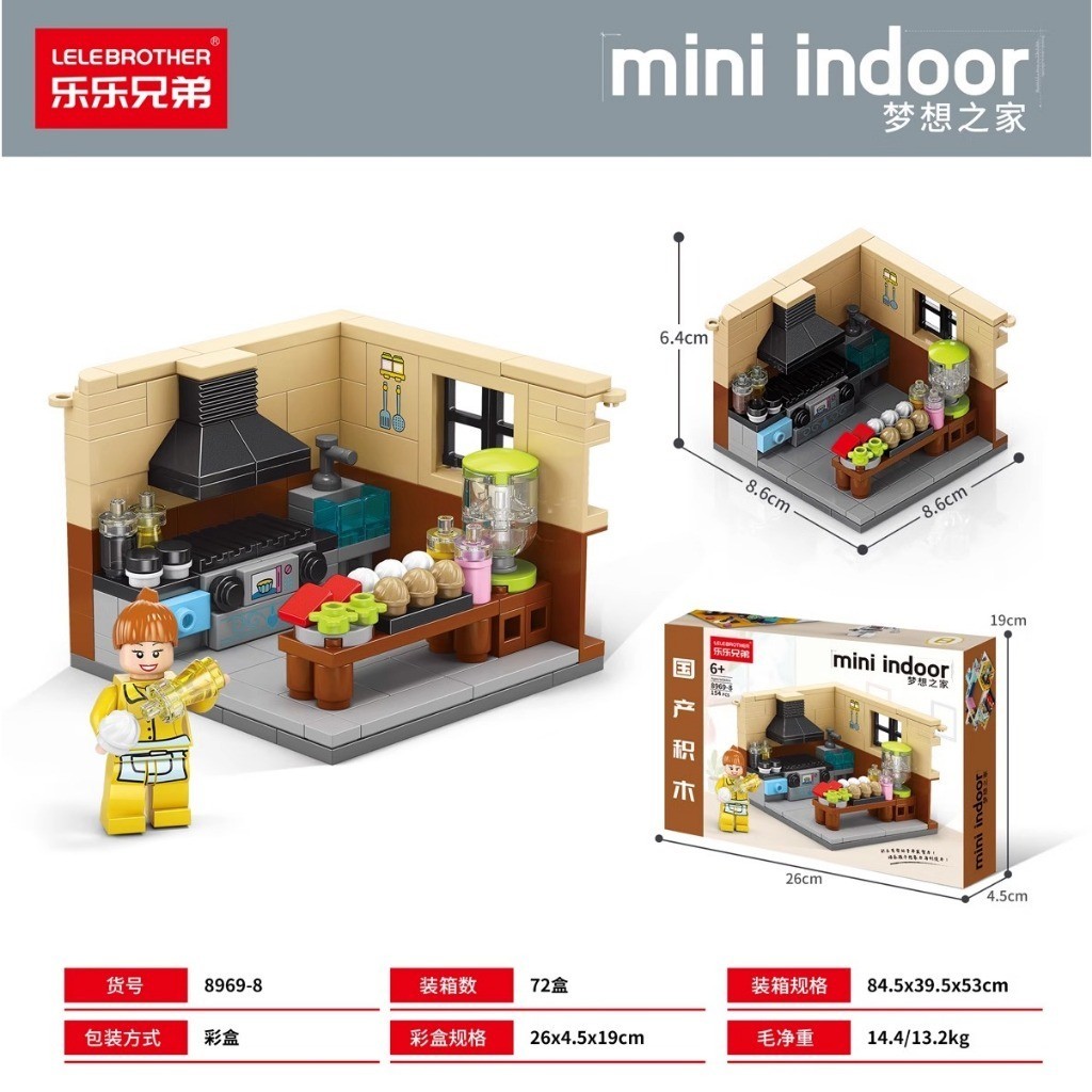 LELE BROTHER Scene mini indoor Building Blocks Style 8 in 1 gift brickChildren Assembling 8969