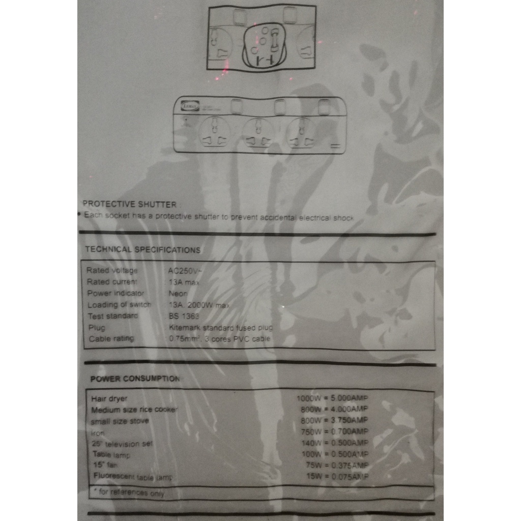 LEMAX 3Pins Universal 5 Gang Power Extension (2M, 3M, 5M)
