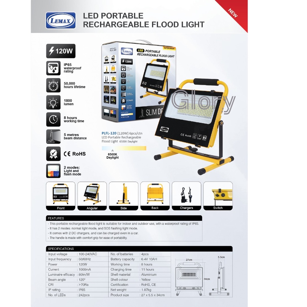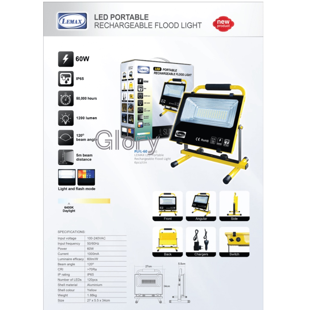 LEMAX Rechargeable Portable LED Flood Light (20W/60W/120W)