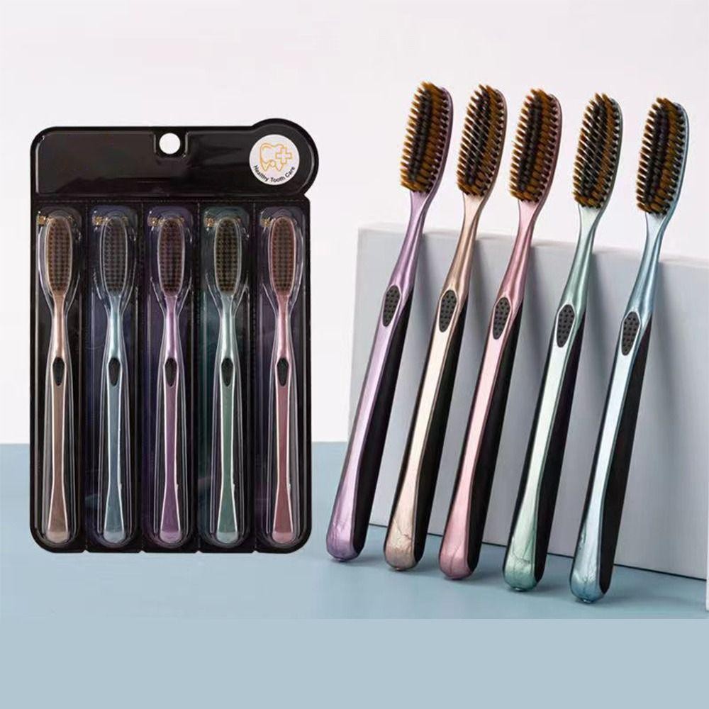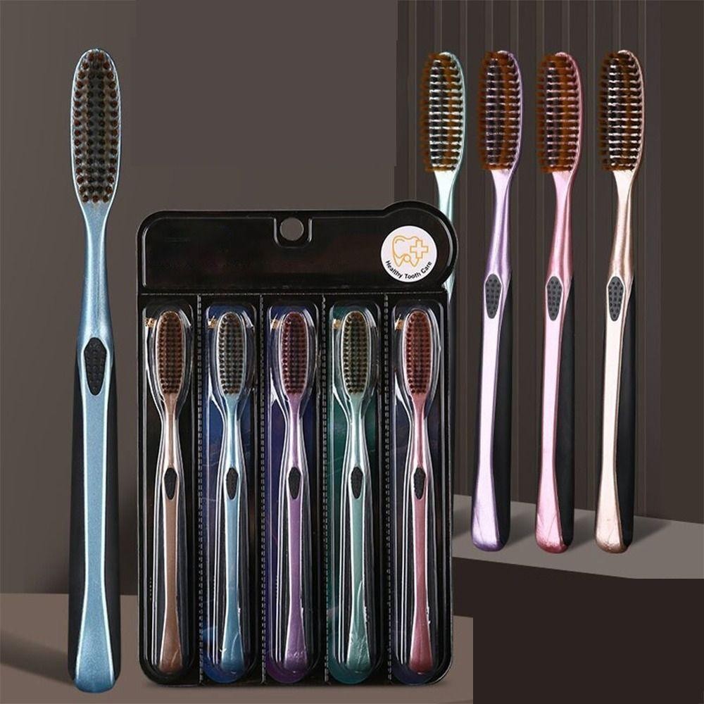 LEMONTRE 5PCS Large Head Toothbrush, Coating Cleaning Whitening Teeth Huge Head Toothbrush, Remove Stains Coffee Stains Oral Care Large Long Head Manual Toothbrush
