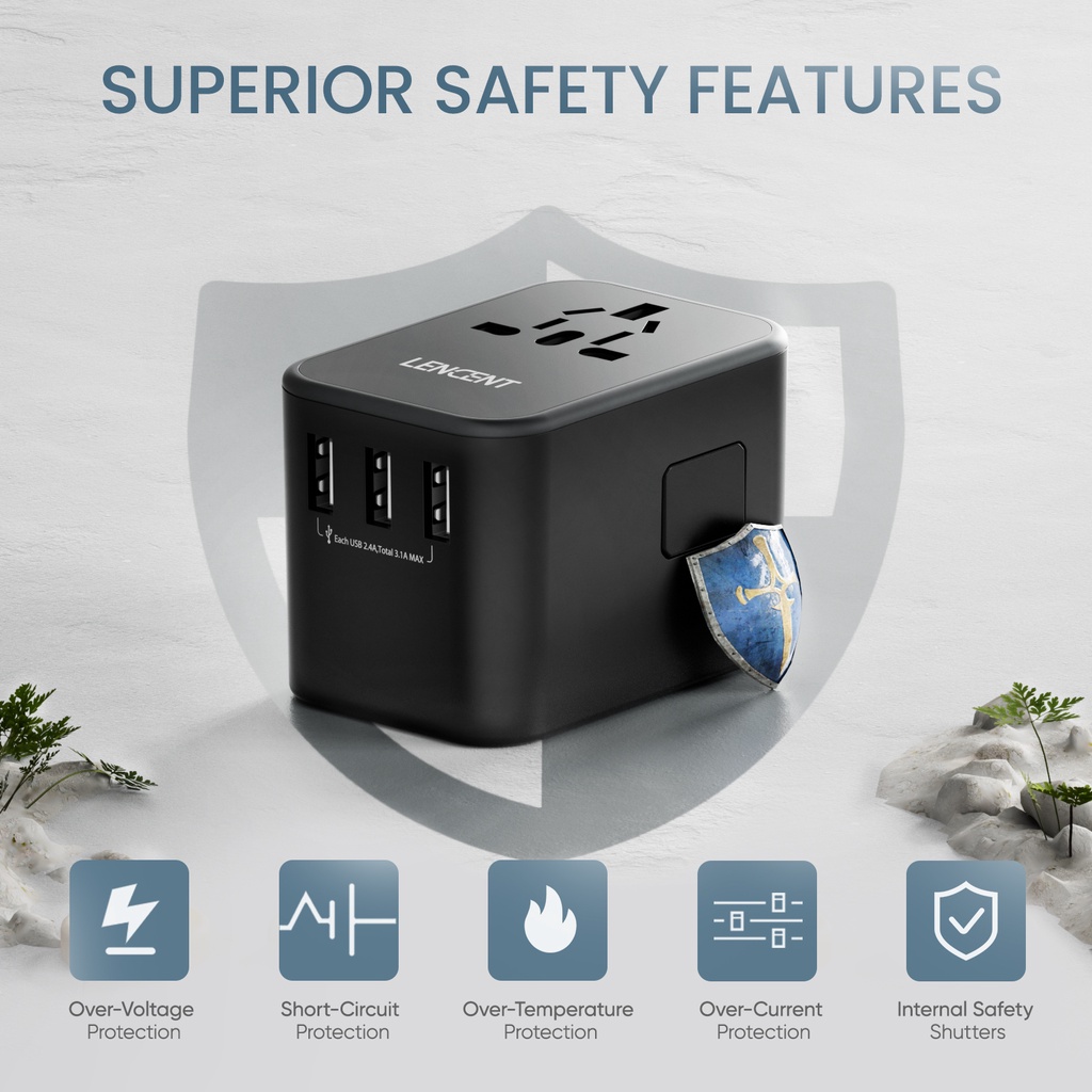 LENCENT 20W Fast Charger Universal Travel Adaptor with UK/USA/EU/AUS Worldwide Travel Charger Plug, 35.5W Total Output, 3 USB Ports and 2 Type C International Wall Adapter