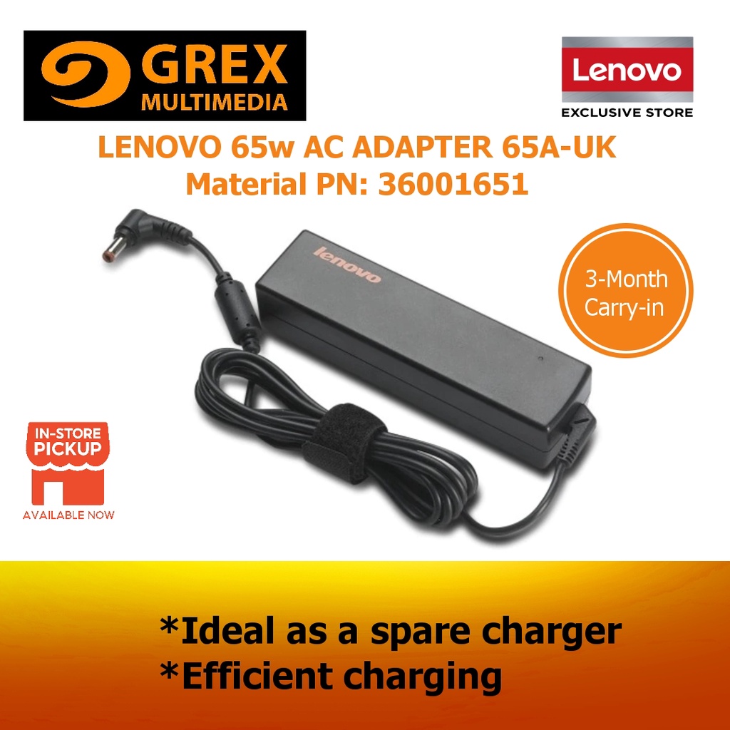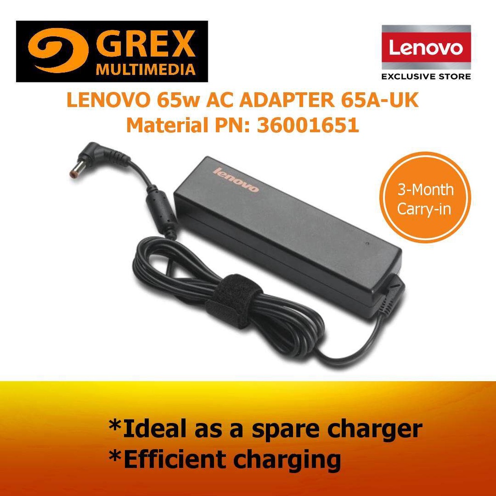 LENOVO 65W AC ADAPTER 65A-UK Material PN 888010241 OR GX21M79552 (round tip) or 4X20M26283 OR GX21A10943 (Type C)