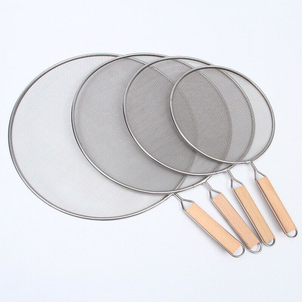 LETTER Splatter Guard Cooking Cover Durable Guards Mesh Grease Splatter Screen New Anti-splash Screen Stainless-Steel Frying Pan Tools Wooden Handle