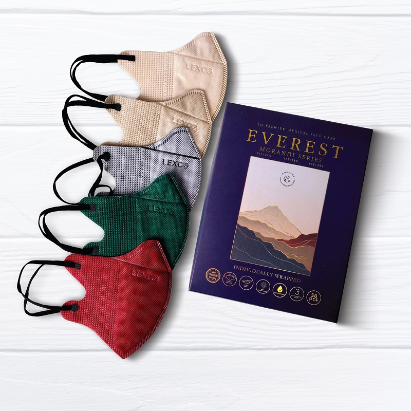 LEXCO MEDICAL 3D EVEREST Medical Face Mask @ 3ply / 50 pcs per box /5 color in 1 / Wrap individually