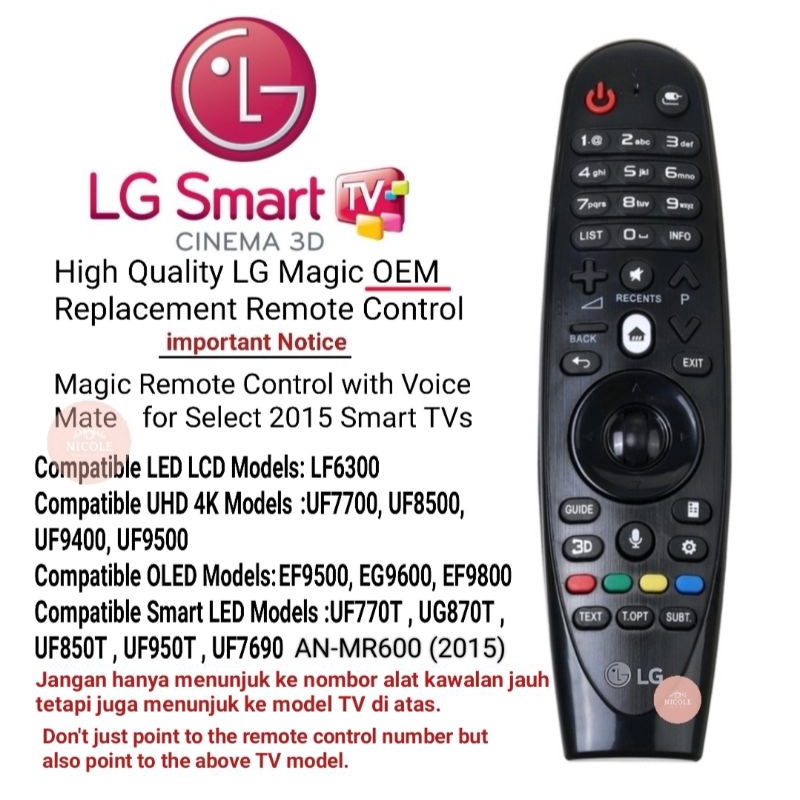 LG AN-MR600 Magic Replacement Remote Control for 2015serie TV includes Voice Function & Pointer Function