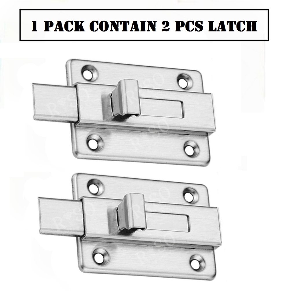 LH 4-087 2" Square Door Latch Bolt Slug Stainless Steel Security Safety Door Slide Shed Gate Fence Toilet Selak Pintu