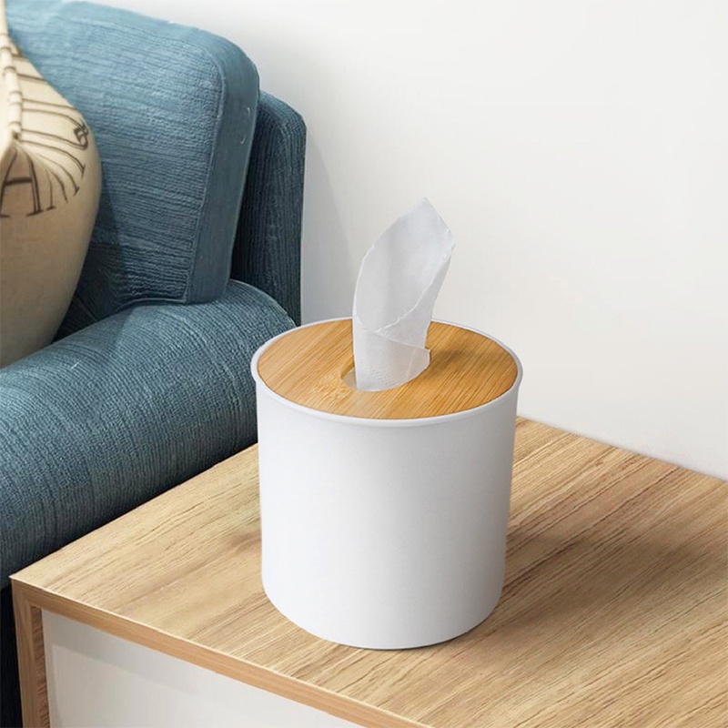 LH Round Tissue Box Wood Bamboo Tissue Box Cover Round White Car Tissue Holder Box For Kitchen Bathroom Toilet