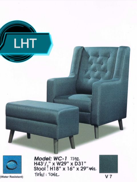 LHT Model : WC 1 ✅ Wing Chairs ✔️ With Stool ✔️ 2.5ft Width x 3.7ft Height
